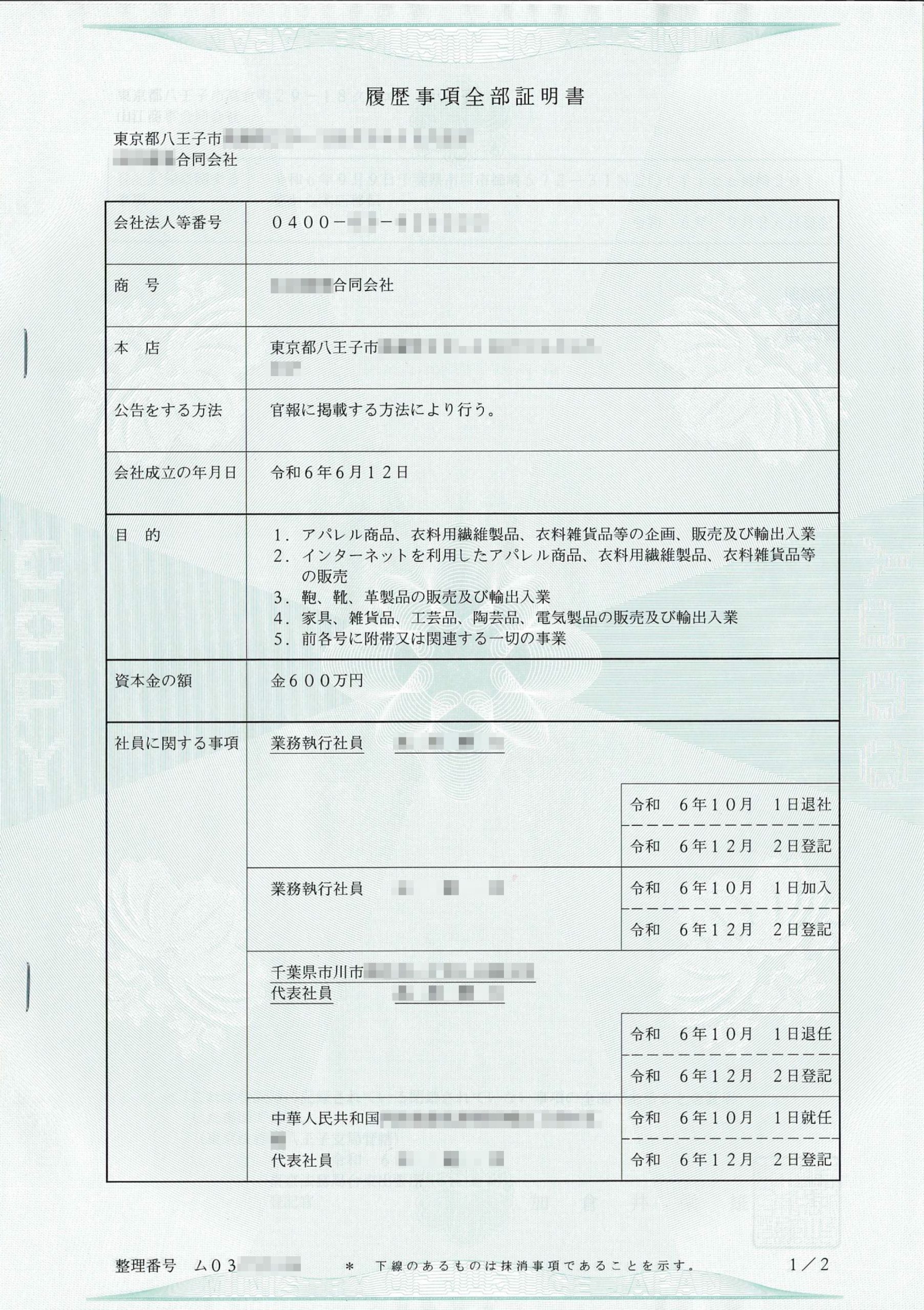 张先生在日本注册公司